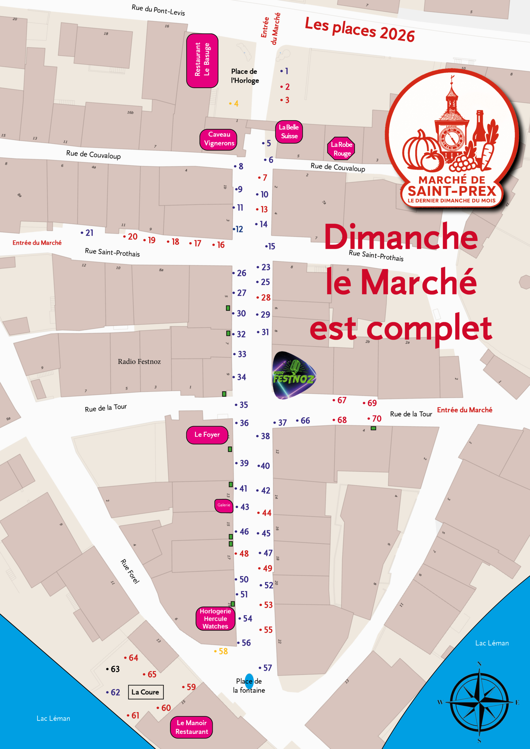 Plan du Marché de Saint-Prex – Liste des exposants